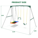 This heavy-duty swing set supports up to 660 lbs., allowing parents to swing alongside their children. Whether it’s classic belt swings, a spacious rectangle swing, or a fun trapeze bar, this set offers versatile play opportunities that will keep your little ones entertained for years to come!