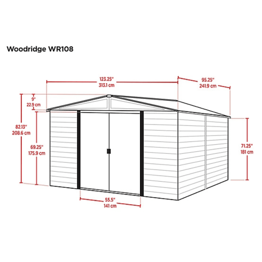 Arrow 10 ft. x 8 ft. Woodridge Shed – Durable Metal Storage with Woodgrain Finish