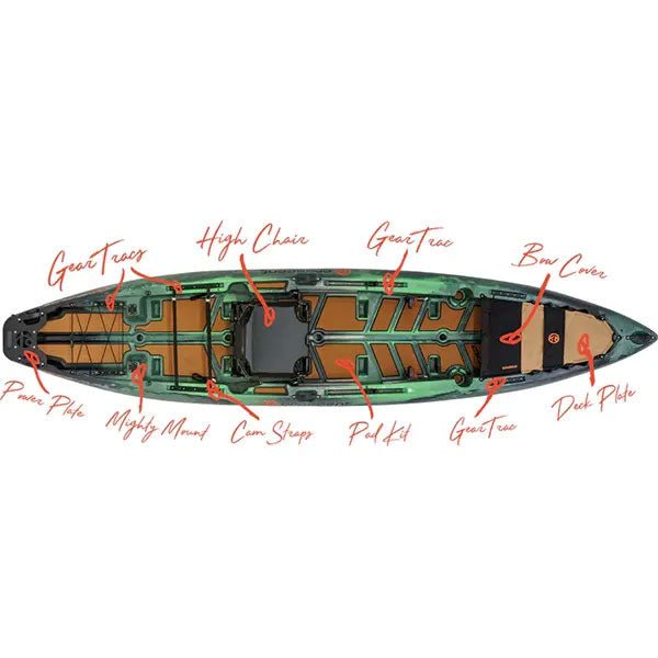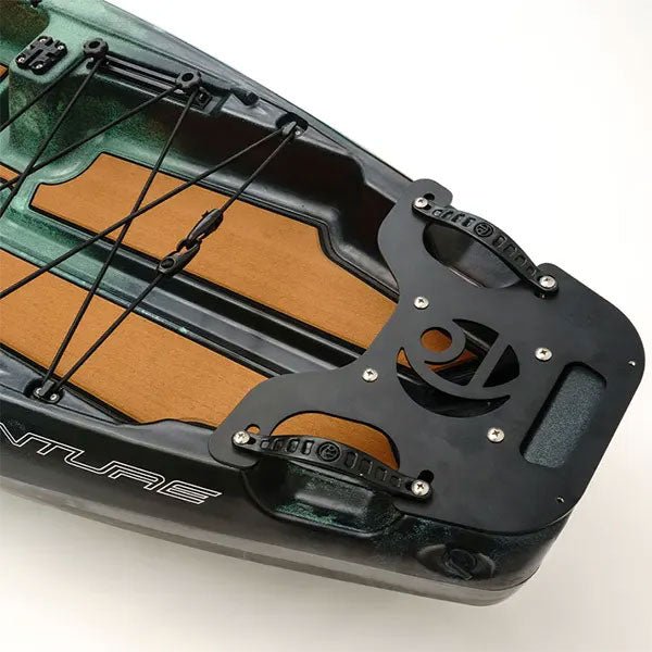 The fore tankwell features dual YakAttack GearTracs with Vertical Tie-Down Loops and Cam Straps for securing coolers, BlackPaks, and more. The aft tankwell features dual YakAttack GearTracs with adjustable bungees for everything else you need. The pass-through features two MightyMount II’s for additional accessory mounting options. The stern features our Power Plate which was custom designed for this model—allowing the mounting of a Power Pole or various motor options.