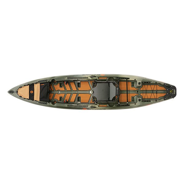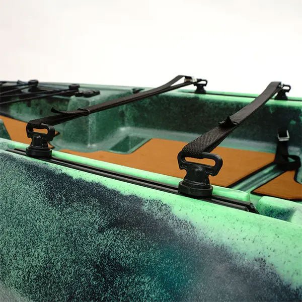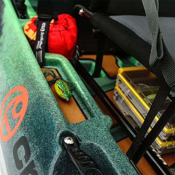 The cockpit of the CK2 Venture has ample leg room with adjustable foot tracks for paddlers of all sizes. This model comes standard with a full teak pad kit that pairs beautifully with the Moss colorway for added comfort, noise reduction, and aesthetics. The High Chair is fully adjustable and comfortable with an extra 2.5″ of closed-cell foam padding. Dual Stash Trays, cupholders, YakAttack GearTracs, and ample room under the seat provide all of the necessary room for your gear and essentials.