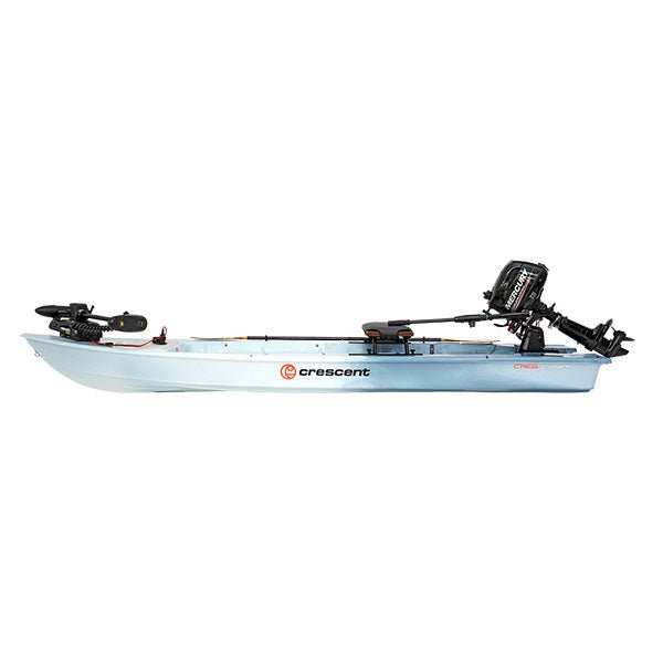 The Cres-Craft is Crescent’s high-performance motor kayak, built on a planing hull for speed and efficiency—achieving up to 19 mph with a 6 HP motor (Micro Skiff) or 3 HP motor (Power Kayak) and excelling with electric power.