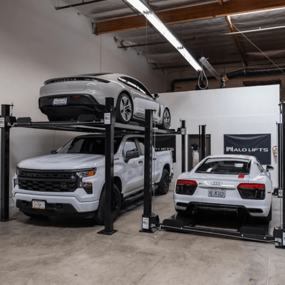Upgrade your garage today with the Halo Lifts Pro XL 4 Post Car Lift—the ultimate solution for large vehicle maintenance, storage, and servicing!