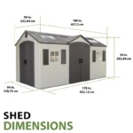 The Lifetime 15 Ft. x 8 Ft. High-Density Polyethylene (Plastic) Outdoor Storage Shed with Steel-Reinforced Construction is a durable, secure, and spacious storage solution that offers long-lasting performance with minimal maintenance. Whether you’re looking to declutter your garage, organize tools, or store large outdoor equipment, this shed is designed to meet your needs while enhancing the aesthetic of your backyard.