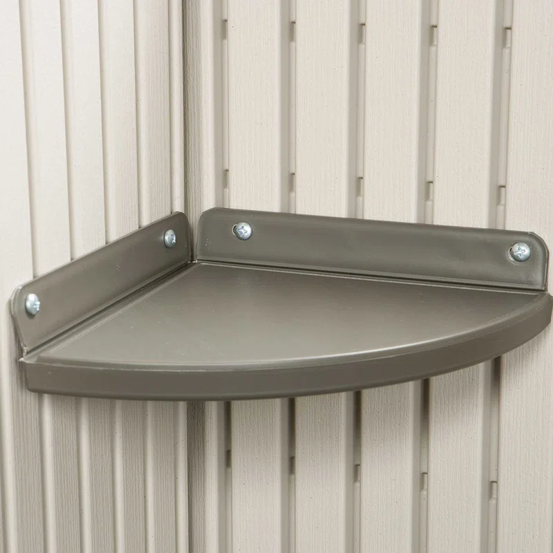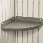 Its centralized double doors allow easy access, so you don’t have to climb over stored items to reach what you need. The high-pitched roof, UV-protected panels, steel reinforcement, and built-in shelving make this shed ideal for year-round use, keeping your tools, equipment, and outdoor essentials safe and organized.