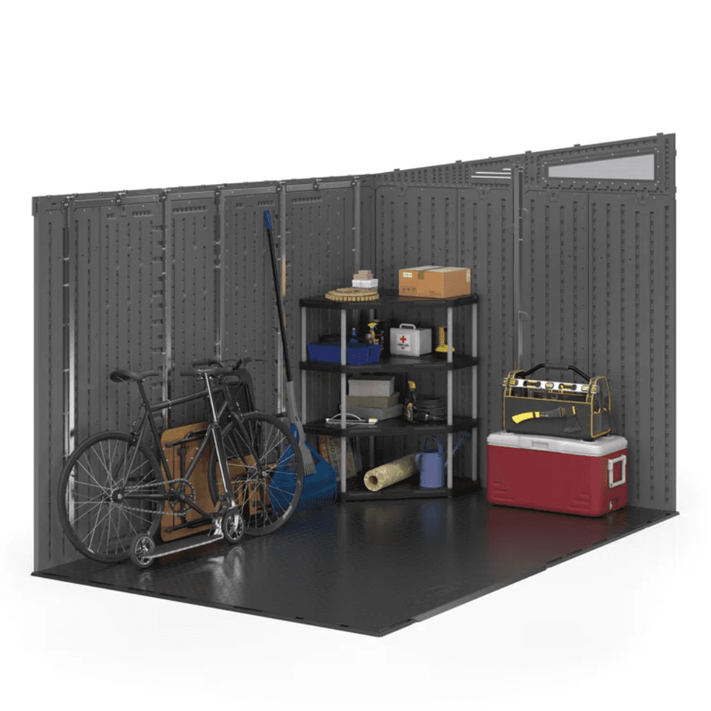 - Reinforced resin floor: Withstands heavy loads, including lawn equipment and large tools.