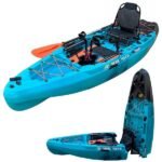 It has a hull weight of only 70lbs, each side is 35lbs and side carrying handles for more convenience and easy carrying. Also, it comes with a comfortable cushioned chair that makes those long hours of fishing more comfortable and a deep-blade rudder system to provide assistance when paddling conditions change. Durable and solid, the kayak provides increased stability, even when standing, which makes it a must-have for every fishing enthusiast.