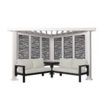 Ridgedale 8 Ft. X 8 Ft. White Steel Modern Cabana Pergola with Conversation Seating in Pumice