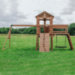 Crafted from high-quality, weather-resistant wood, this durable swing set is built to withstand the elements while providing years of safe and exciting play. With a sturdy frame, reinforced structure, and ASTM-certified safety features, parents can feel confident knowing their children are playing on a secure and reliable playset.