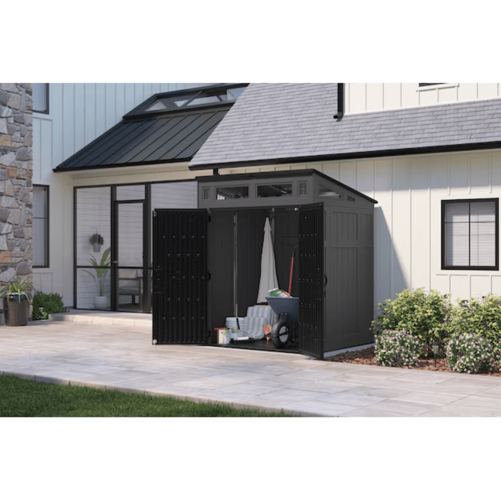 Organize and protect your outdoor essentials with the Suncast 6′ x 5′ Modernist® Storage Shed — a durable, secure, and stylish solution for your backyard!