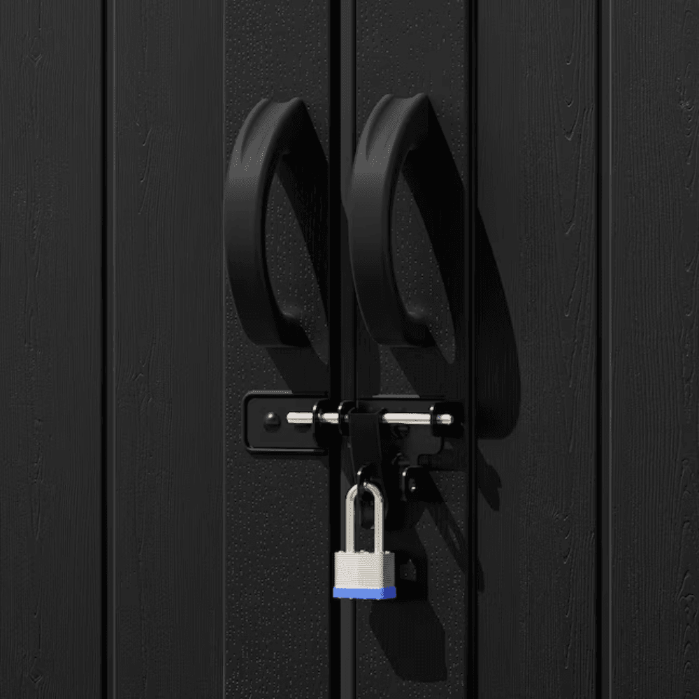 - Secure & weatherproof storage – lockable double doors, impact-resistant walls, and UV protection.