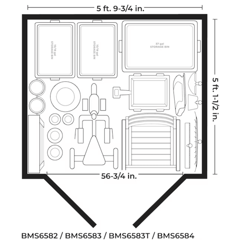 200 cu. ft. of storage space — ideal for gardening tools, bicycles, outdoor furniture, and more.