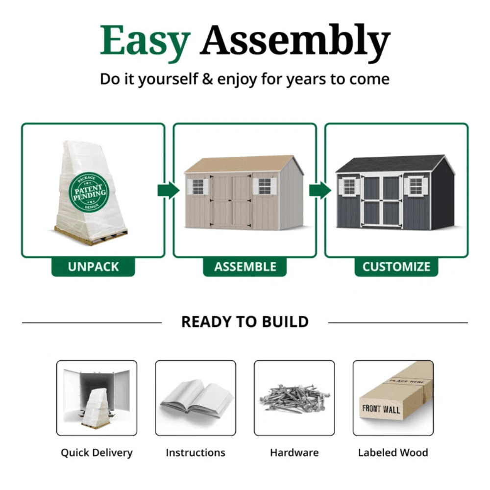 - Shed arrives primed and ready to paint, allowing you to match it to your home’s aesthetic