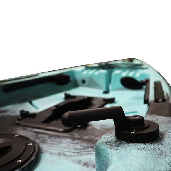 A one-handed rudder control allows for easy maneuvering. The rudder system is an integrated design with the bottom of the hull and no need to worry about obstacles that can damage your rudder; the rudder is securely horizontally aligned under the Kayak. As an added feature, the Mahi Mahi Fin Drive Fishing Kayak is equipped with the functionality to easily mount a motor mount on the back of the Kayak for when you want to get to your next secret spot quicker. The motor will not interfere with your rudder system and no need to make adjustments to your steering system.