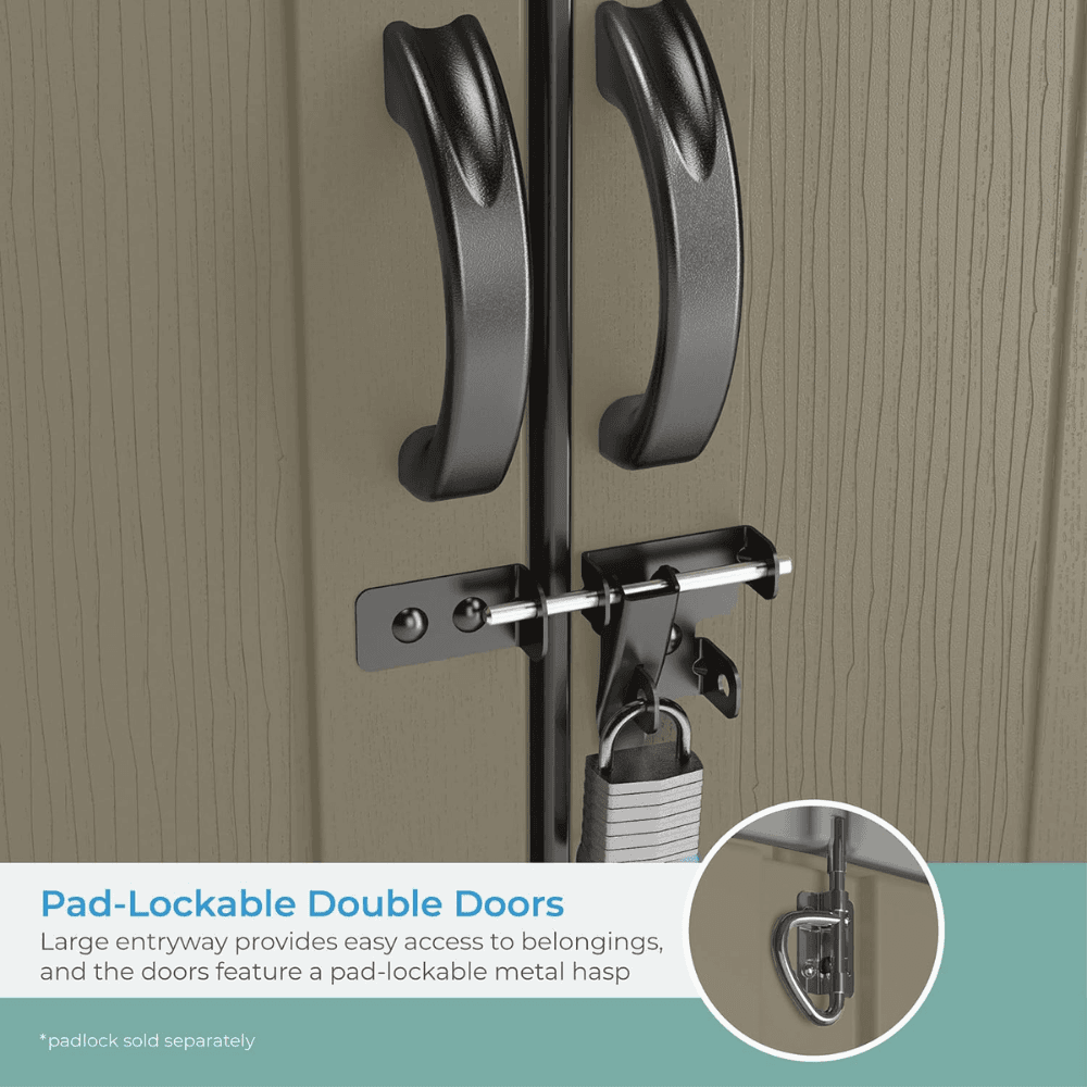 Lockable double doors provide secure storage (padlock not included).